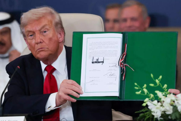 அமெரிக்க ஜனாதிபதி ட்ரம்ப் தலைமையில் எகிப்தின் ஷர்ம் அல்-ஷேக்கில் நடந்த வரலாற்றுச் சிறப்புமிக்க அமைதி உச்சிமாநாட்டில் காசா போர் நிறுத்த ஒப்பந்தம் கையெழுத்தானது.