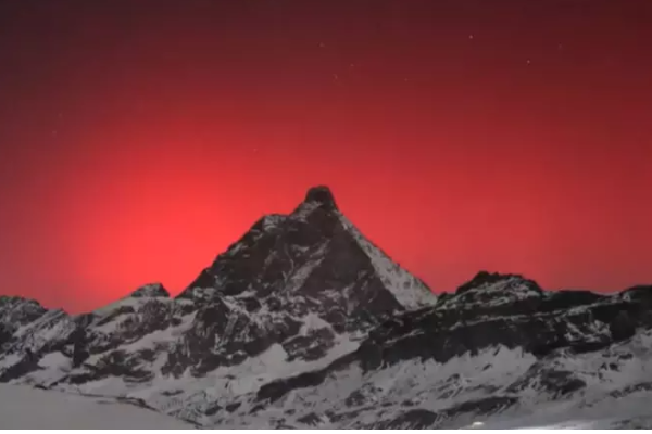 பொதுவாகத் துருவப் பகுதிகளில் மட்டுமே காணப்படும் அரிய இயற்கை நிகழ்வான ‘அரோரா போரியாலிஸ்’ (Aurora Borealis), இத்தாலியின் ஆஸ்டா பள்ளத்தாக்கில் உள்ள மேட்டர்ஹார்ன் மலைப்பகுதியில் சிவப்பு வண்ணத்தில் காட்சியளித்து மக்களை வியப்பில் ஆழ்த்தியுள்ளது.