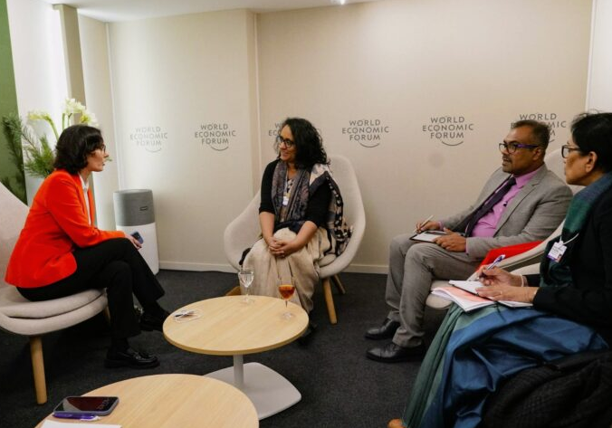சுவிட்சர்லாந்தில் நடைபெறும் உலக பொருளாதாரமன்ற மாநாட்டில் பங்கேற்றுள்ள பிரதமர் ஹரிணி அமரசூரிய, சர்வதேச அமைப்புகளின் பிரதானிகளுடனும் பேச்சு நடத்தி வருகின்றார். இதன்ஓர் அங்கமாகவே மேற்படி சந்திப்பு நடைபெற்றது.